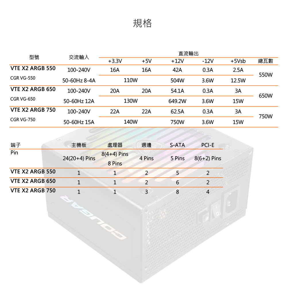 VTE X2 ARGB 650W 銅牌 電源供應器